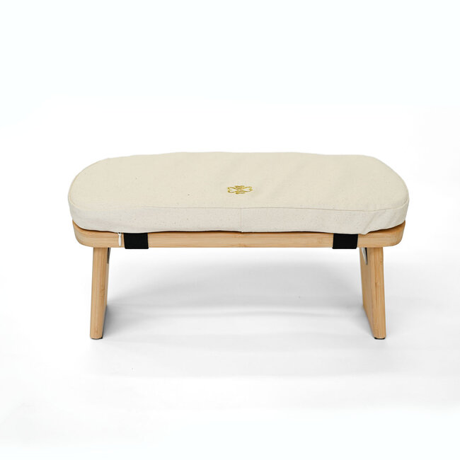This folding bamboo meditation bench with an unbleached cotton cushion helps you relax effortlessly in the seiza position (ideal for those who find sitting cross-legged less comfortable). The combination of natural bamboo and a soft cushion creates an immediate sense of calm and comfort, allowing you to mindfully land in the moment.